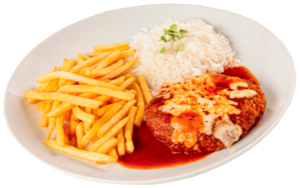 - Tiras de Frango Empanado, Arroz, Feijão e Fritas